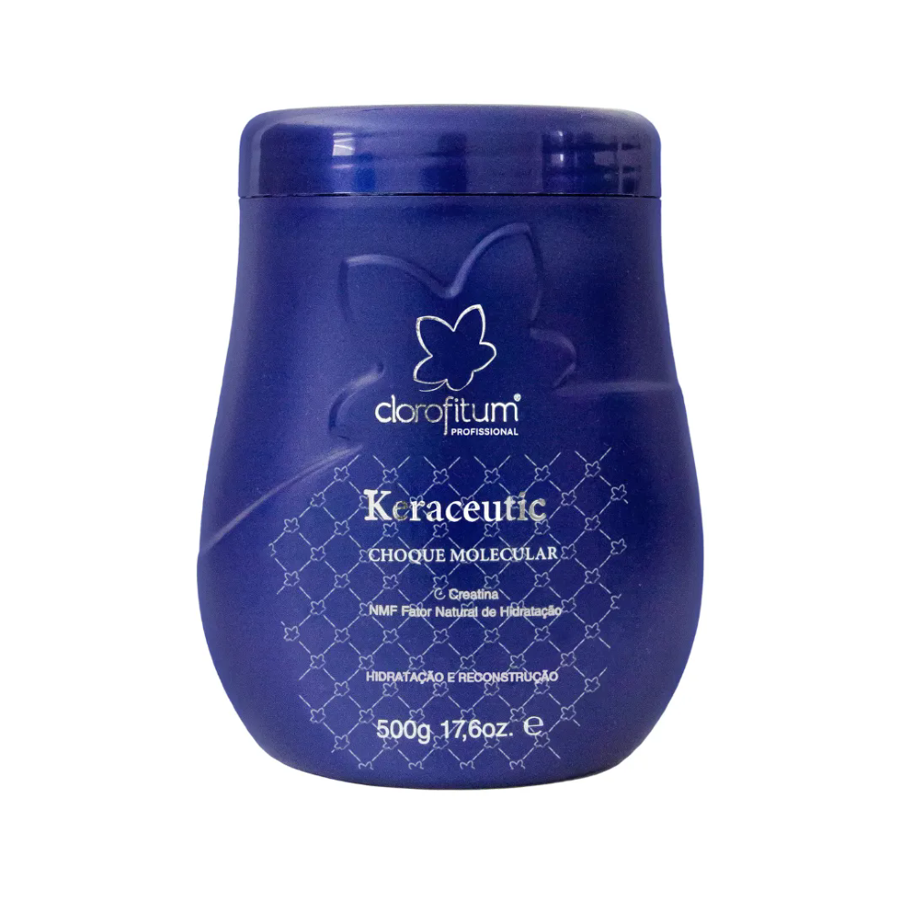 O Keraceutic Choque Molecular 500g faz parte da Linha Home Care da Clorofitum, com a mesma qualidade da Linha Profissional. Auxilia na restauração dos fios, proporcionando o reequilíbrio no teor de água, hidratando e fortalecendo os fios.
