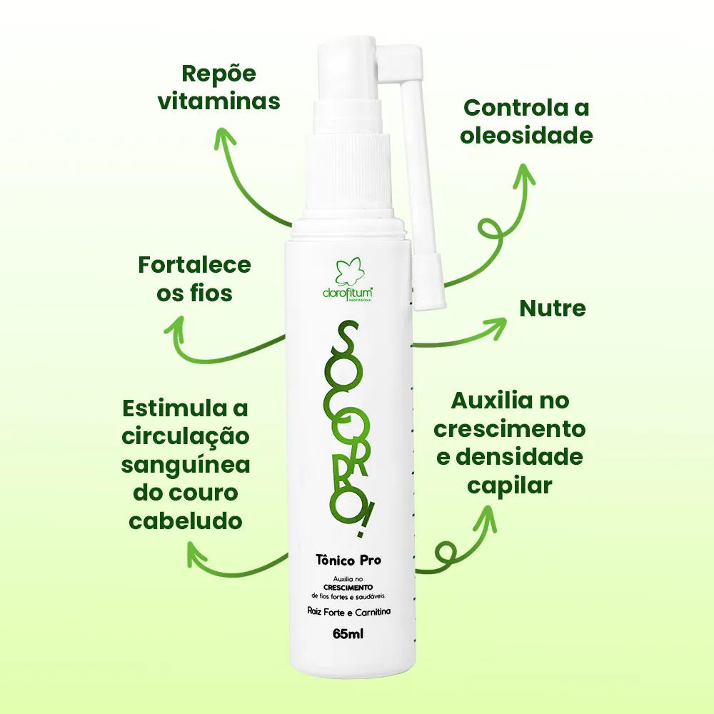 O Tônico Socorro Pro é a solução ideal para fortalecer e estimular o crescimento dos cabelos. Sua fórmula com extratos naturais ativa a circulação no couro cabeludo, repõe vitaminas e proteínas essenciais, e reduz a queda capilar. Perfeito para quem busca fios mais saudáveis, fortes e hidratados de forma natural.